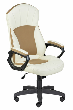 Кресло на колесах Менеджер ультра кожзам бежевый крестовина пластик, подлокотники пластик, механизм качания