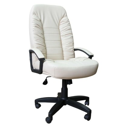 Кресло на колесах Канц ультра кожзам бежевый, крестовина пластик, подлокотники с мягкими накладками, механизм качания