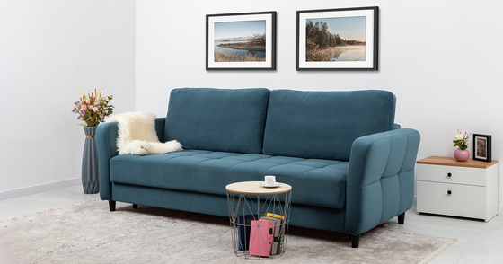 Диван-кровать прямой Дакота ТД 584 велюр Vendetta 24 синий, Riga 1598 z1 col 20 серо-голубой, Romeo 06