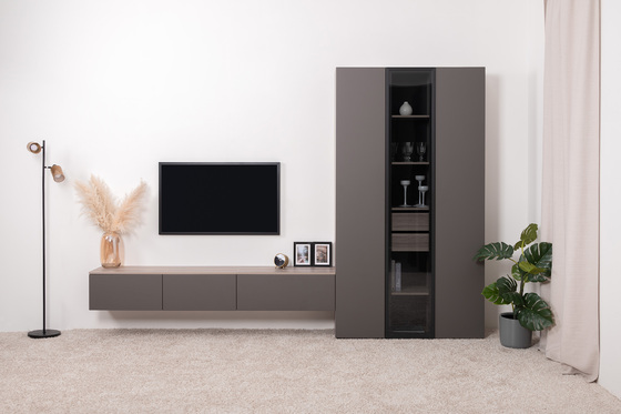 Тумба под ТВ Роквуд 16.54.01 Эмили Блаш U9135, Графит мягкая шагрень 2998 ПВХ, напольная/навесная установка