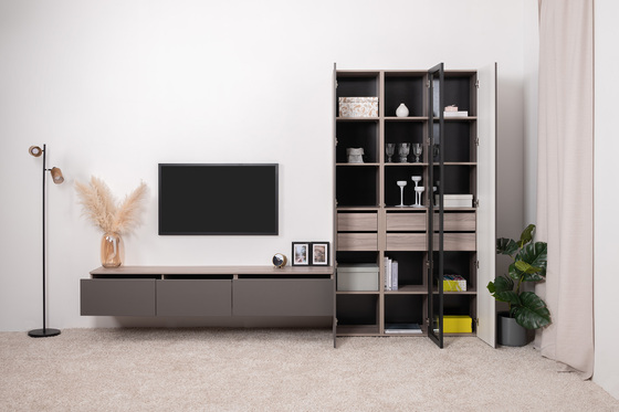 Тумба под ТВ в гостиную Сидней 13.63 антрацит, веллюто капучино ПВХ