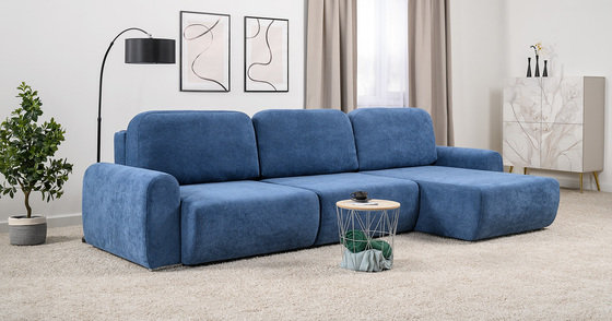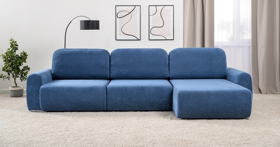 Диван-кровать угловой Тэдди 1504 композиция 2, букле Pique 009 синий, модульная система, сборка на любую сторону