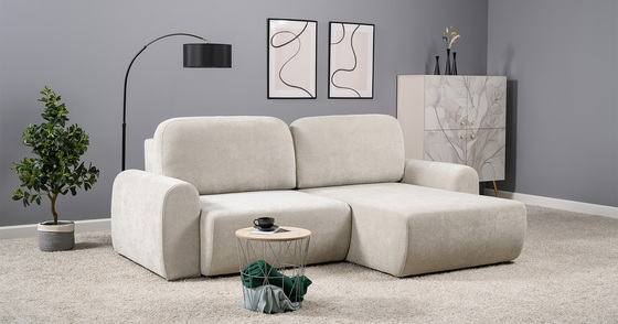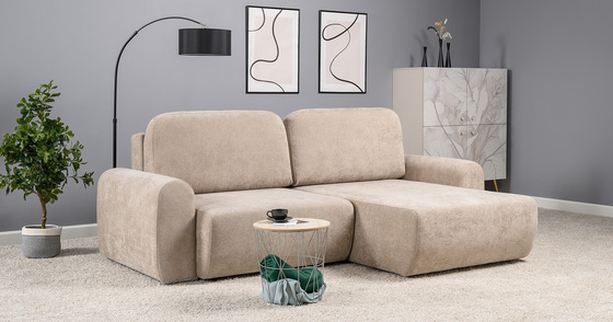 Диван-кровать угловой Тэдди 1502 композиция 3, букле Pique 006 бежевый, модульная система, сборка на любую сторону