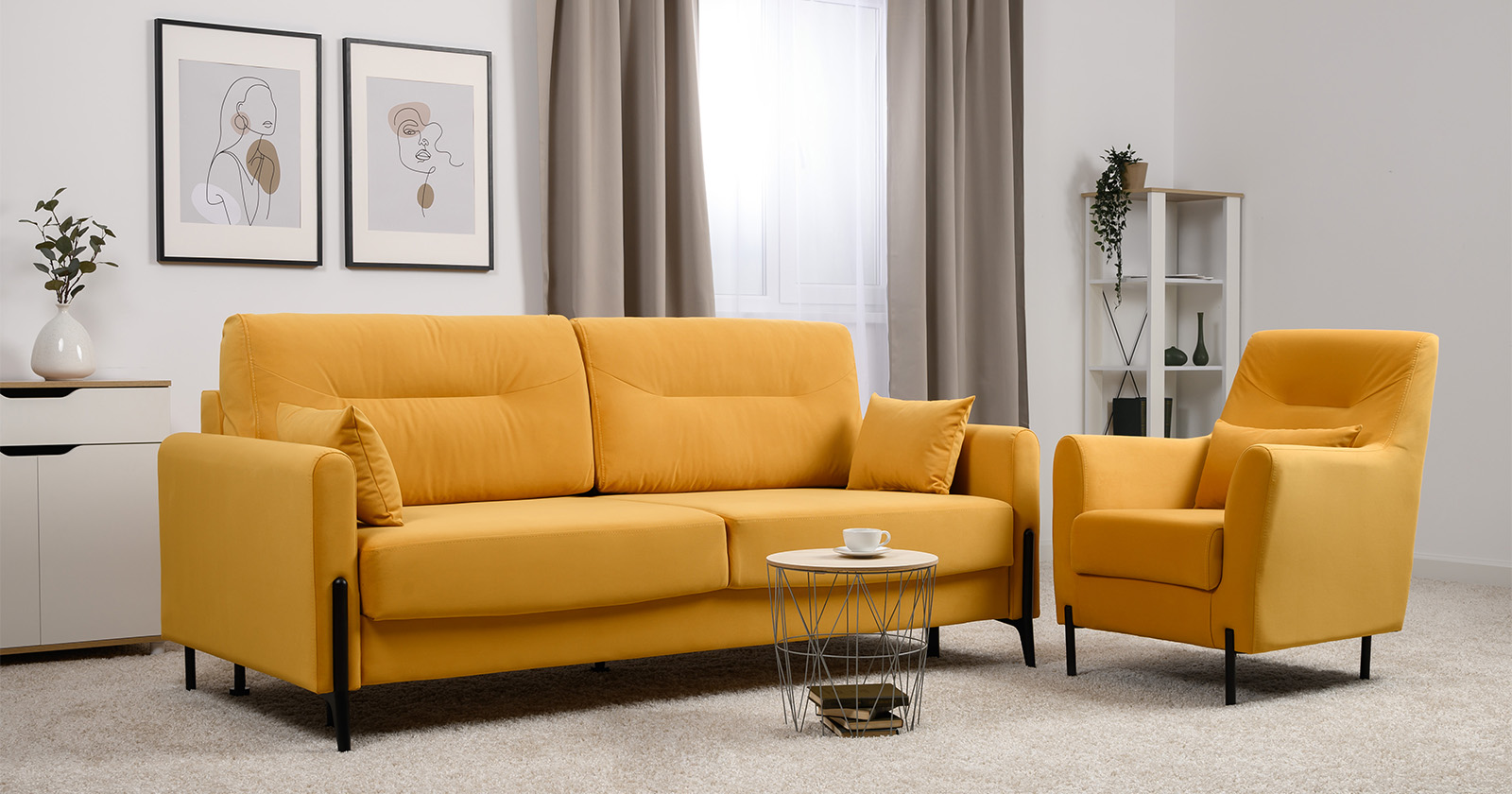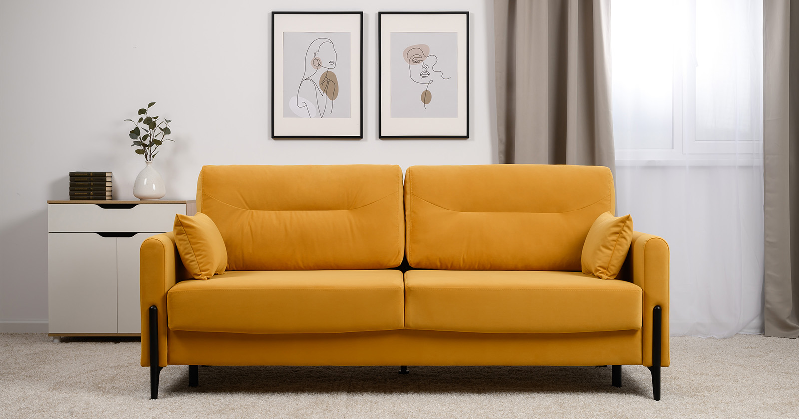 Диван-кровать прямой Барселона ТД 671 велюр Diagonal 540 желтый
