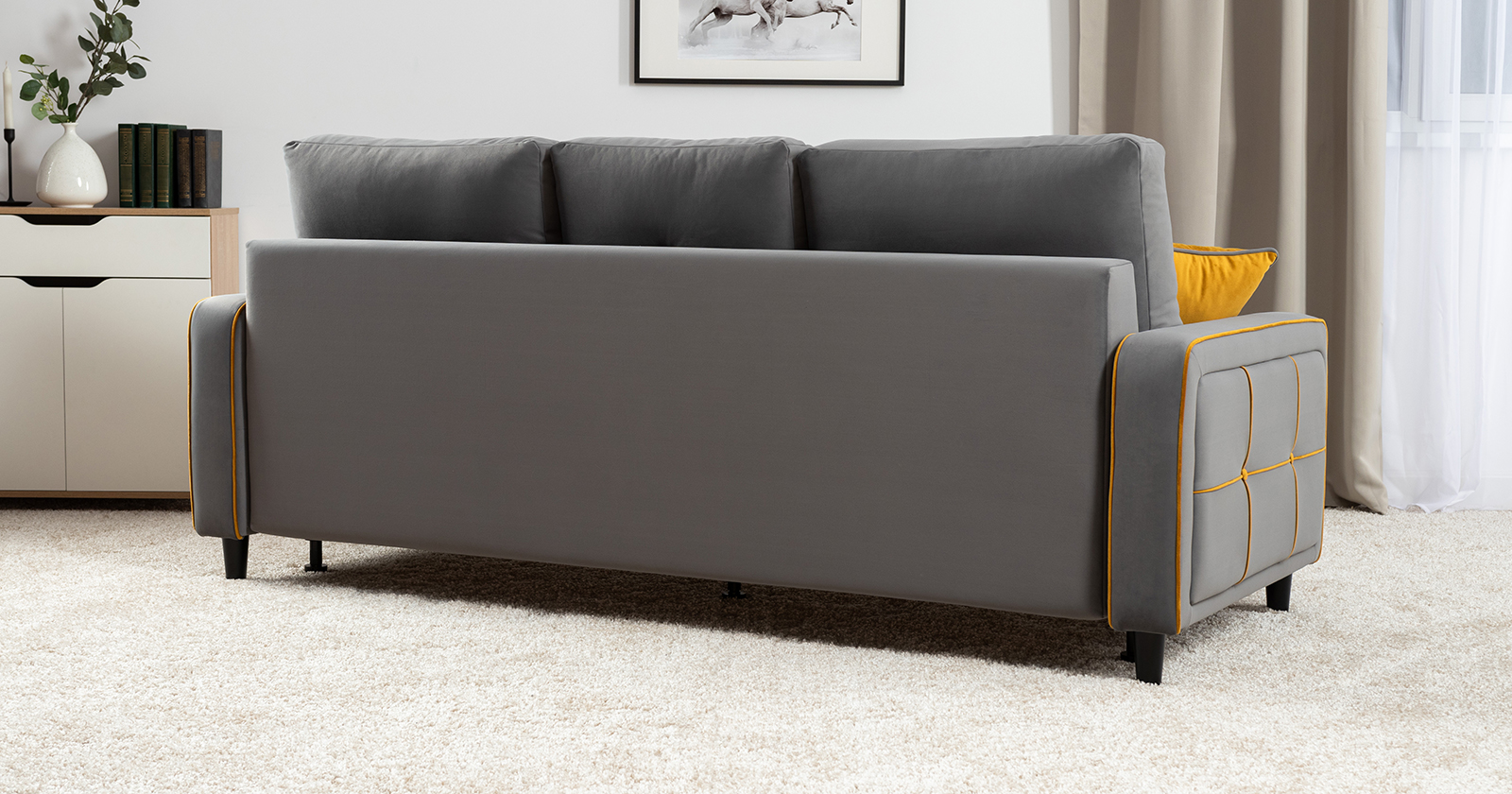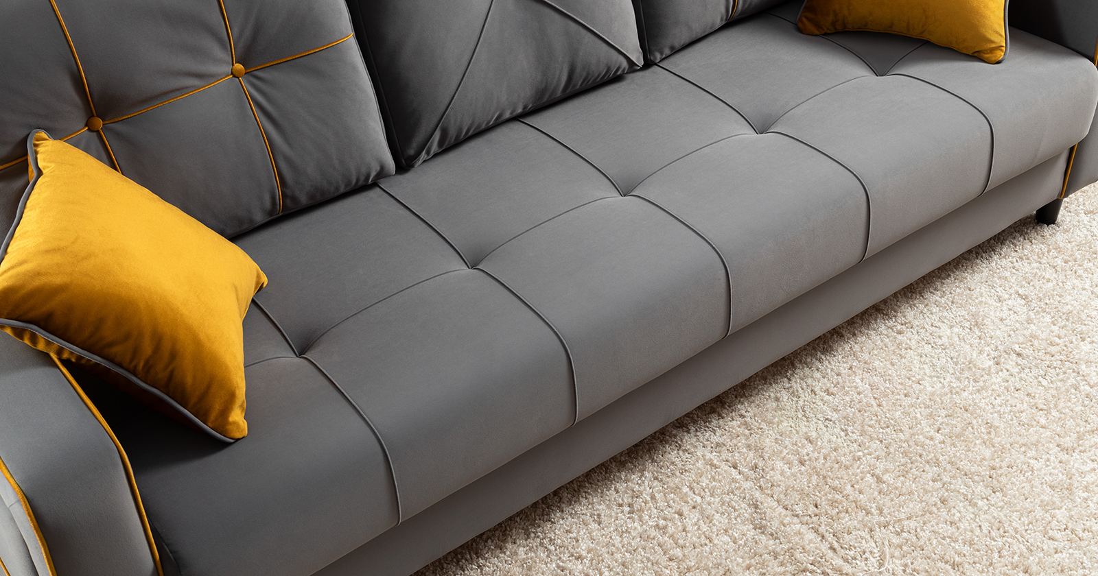 Диван-кровать прямой Черри ТД 287 велюр Irida 21 серый, Эвита умбер горчичный