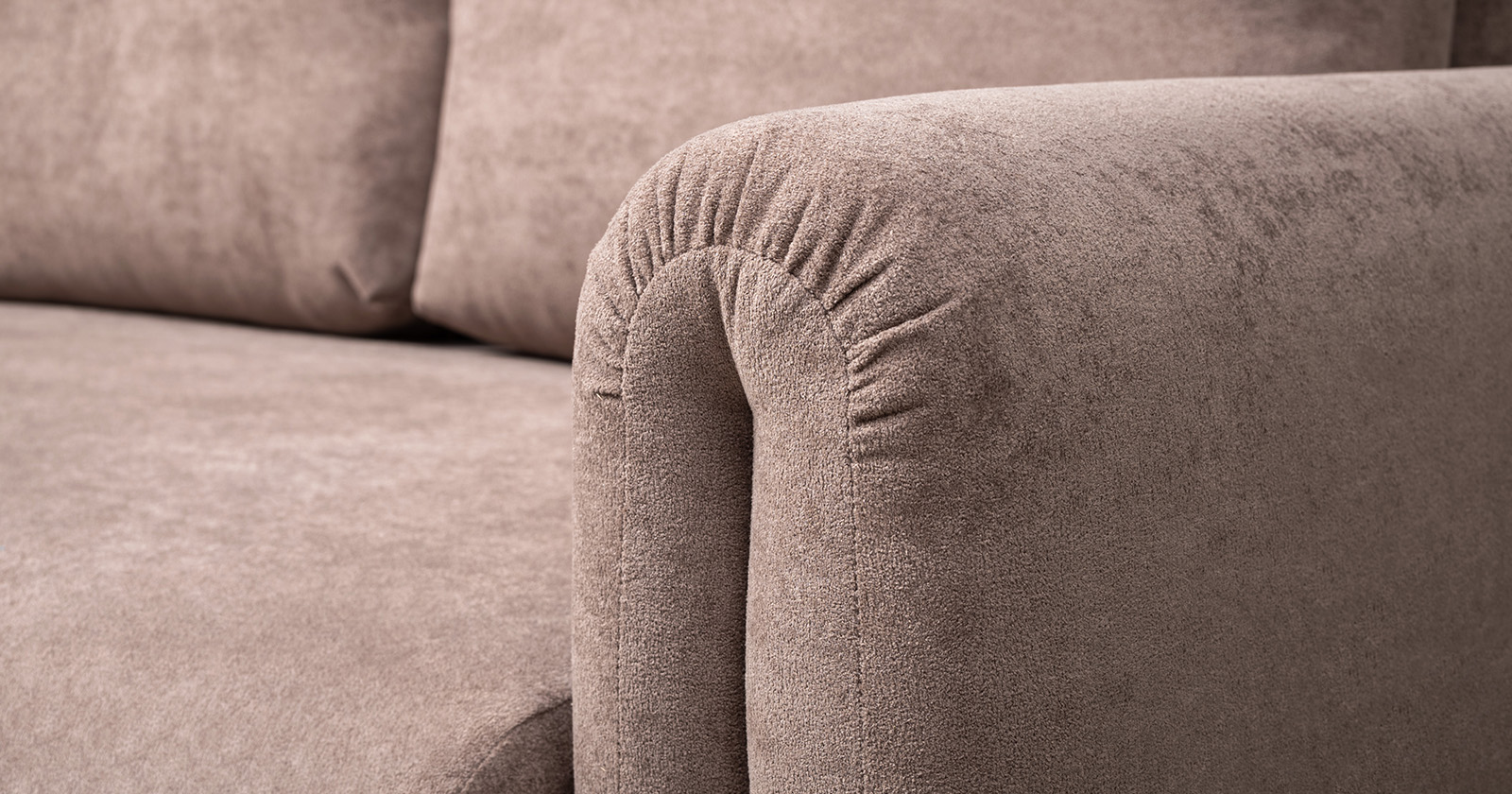 Декоративные утяжки и складки на подлокотниках придают дивану неповторимый шарм, который станет изюминкой любого интерьера — от классического до современного. Приспинные подушки со сборкой в верхней части.