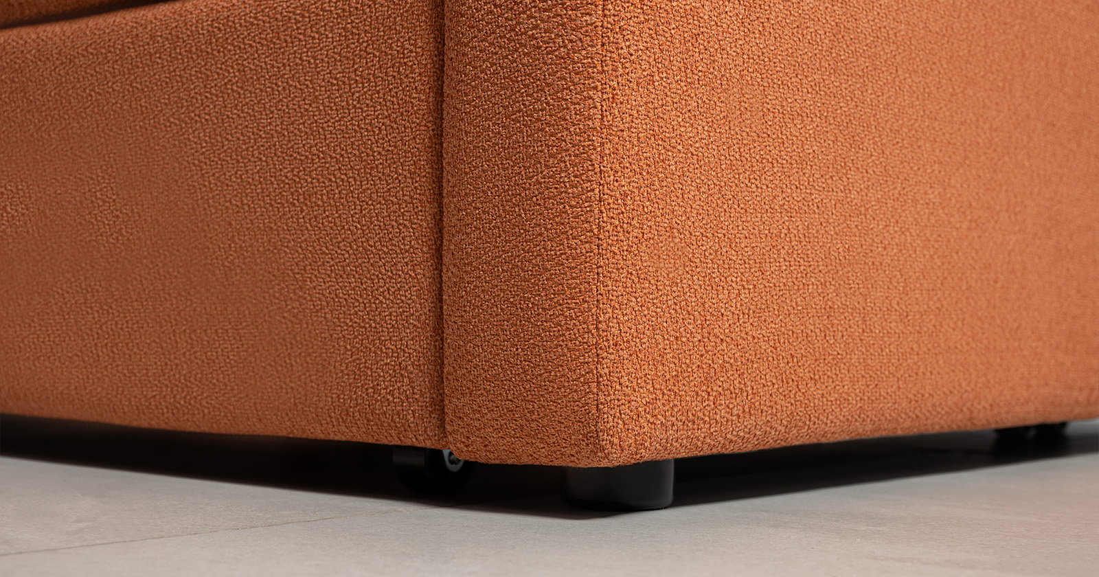 Коллекция выполнена в современном минималистичном стиле с мягкой обивкой из износостойкой ткани и декоративной стежкой, подчеркивающей геометрию форм. Механизм трансформации обеспечивает дополнительное спальное место, делая мебель не только эстетичной, но и максимально функциональной для небольших пространств.