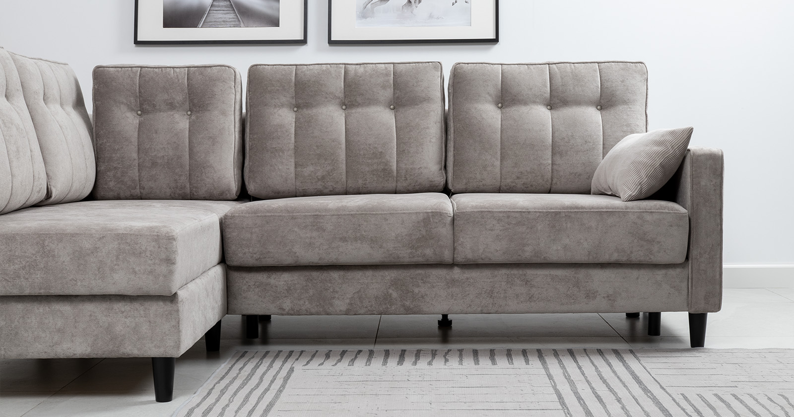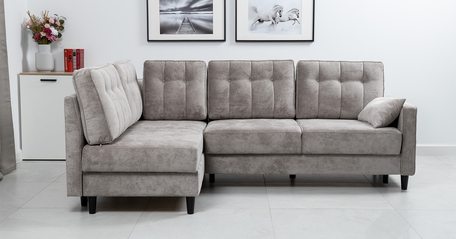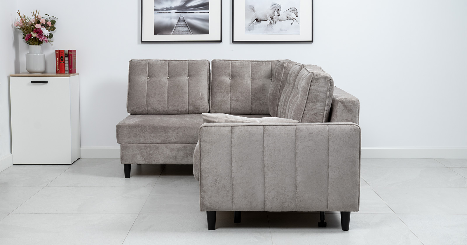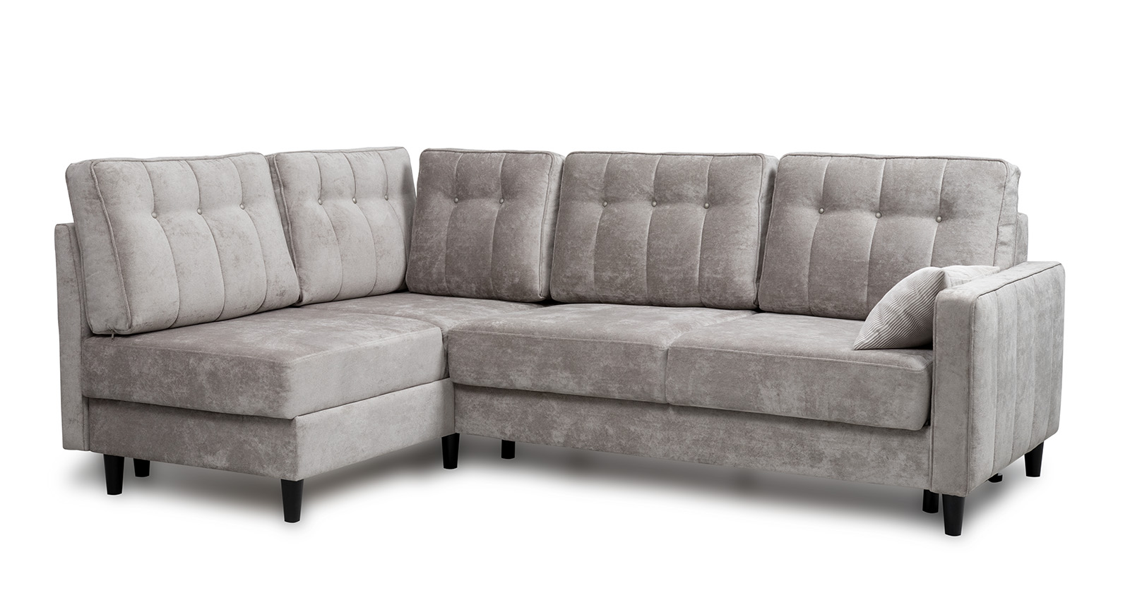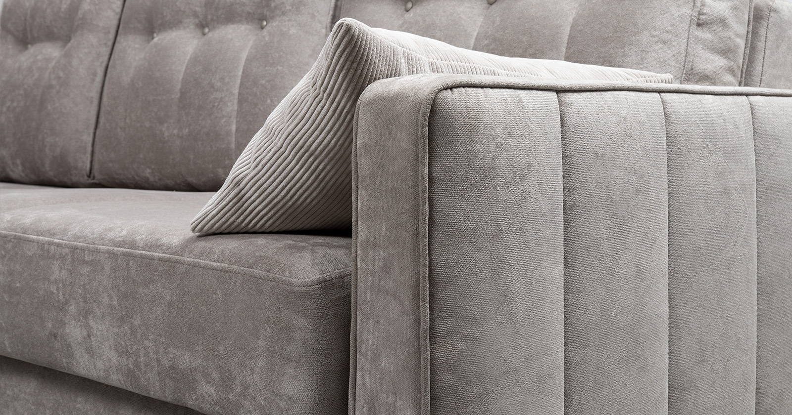 Диван-кровать угловой Арно ТД 563 велюр Лаки 02 серый жемчуг, Vertical 910 молочно-серый, сборка на любую сторону