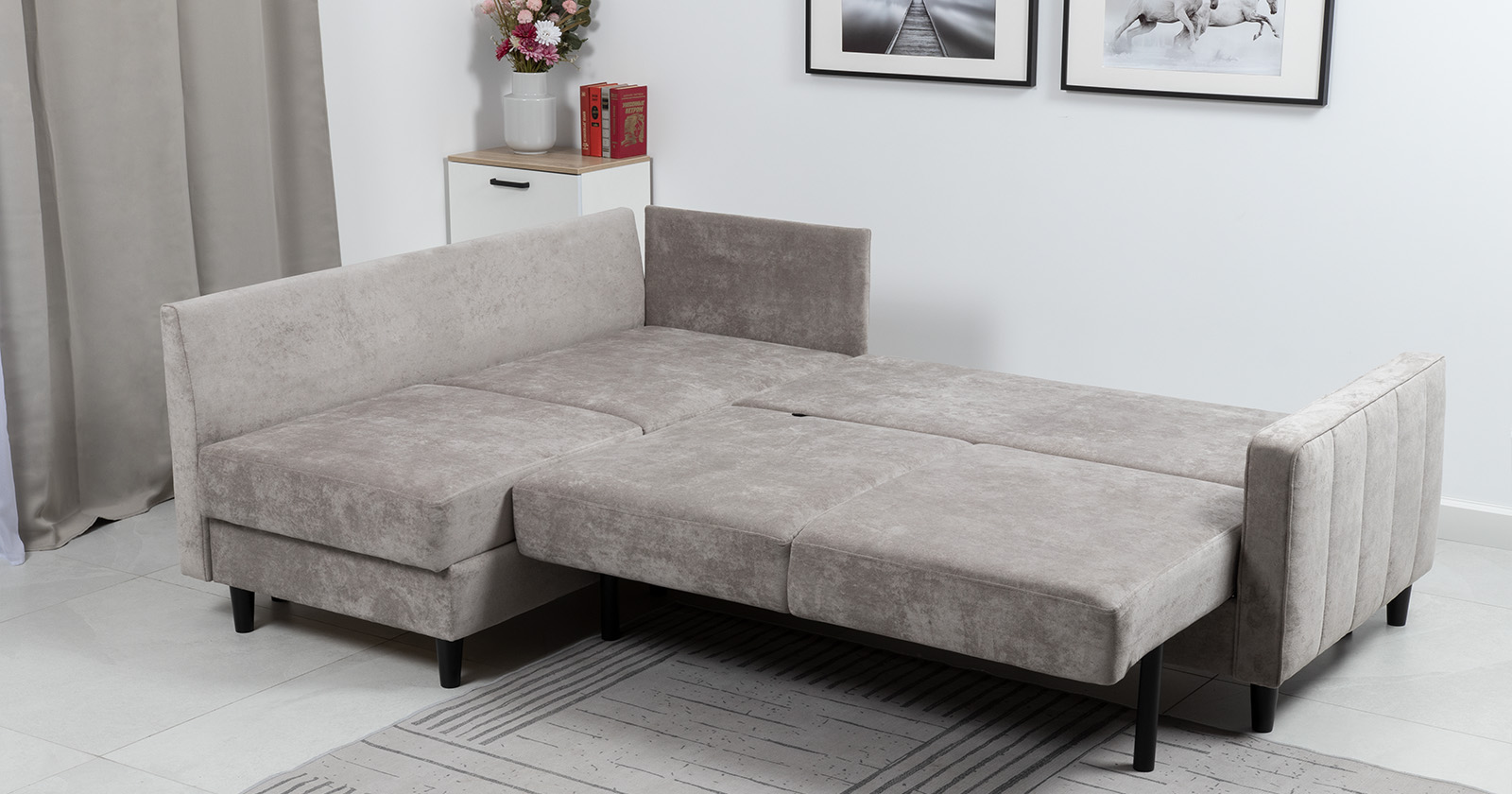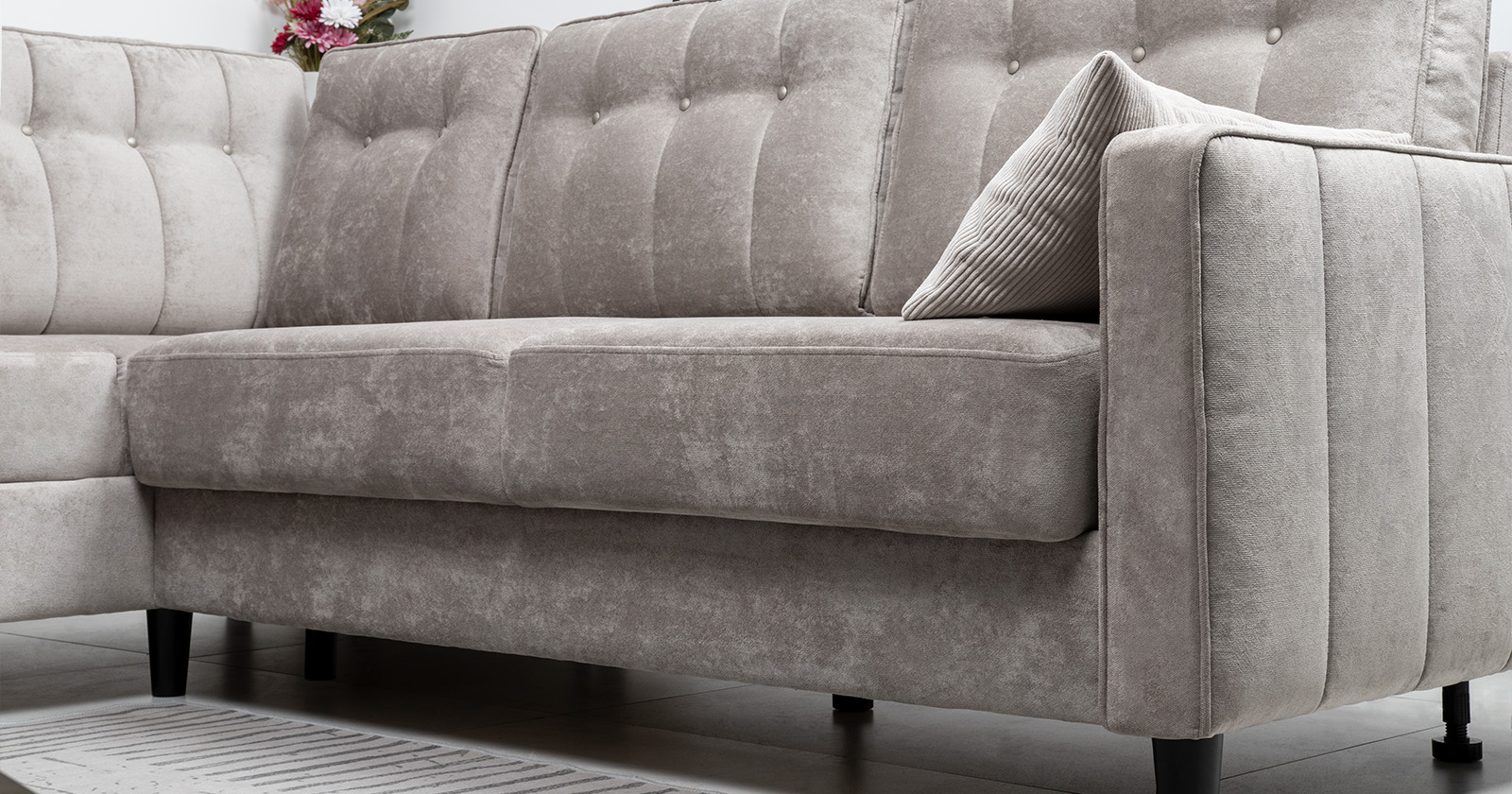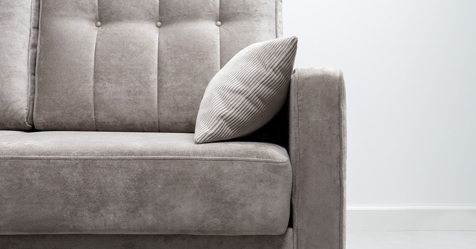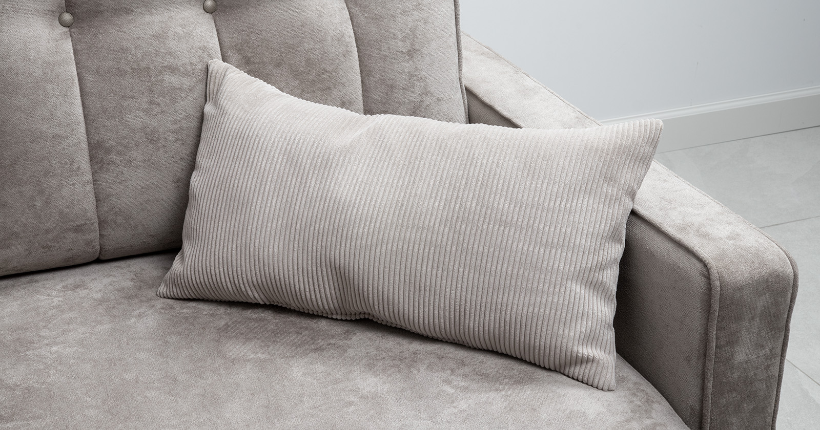 Диван-кровать угловой Арно ТД 565 велюр Лаки 04 песочный, Vertical 910 молочно-серый, сборка на любую сторону