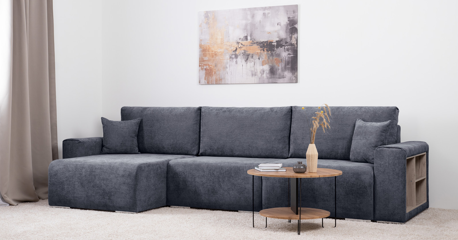 Модульная система Оксфорд состоит из пяти отдельных модулей: диванного модуля, оттоманки, широкого подлокотника (с полками или без), а также узкого подлокотника. Их легко можно комбинировать, создавая идеальное пространство для отдыха и общения. Вы видите один вариант компоновки, но их можно придумать гораздо больше!