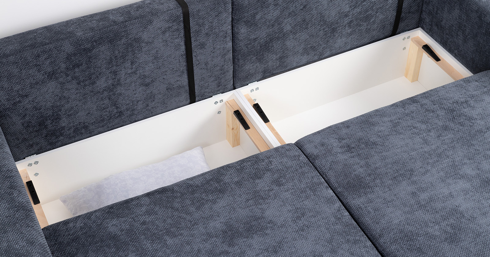 «Компоновка 5» состоит из: оттоманки арт. ТО, дивана арт. ТД, узкого подлокотника арт. ТБ, широкого подлокотника с ящиком арт. ТБ, двух приспинных подушек и двух декоративных подушек.