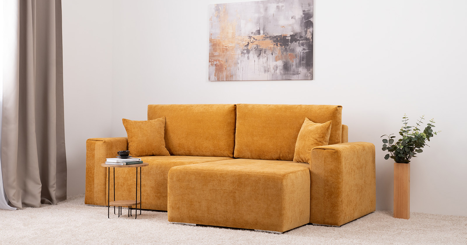Диван-кровать угловой Оксфорд 714 композиция 2, STORM 8 горчичный, модульная система, сборка на любую сторону