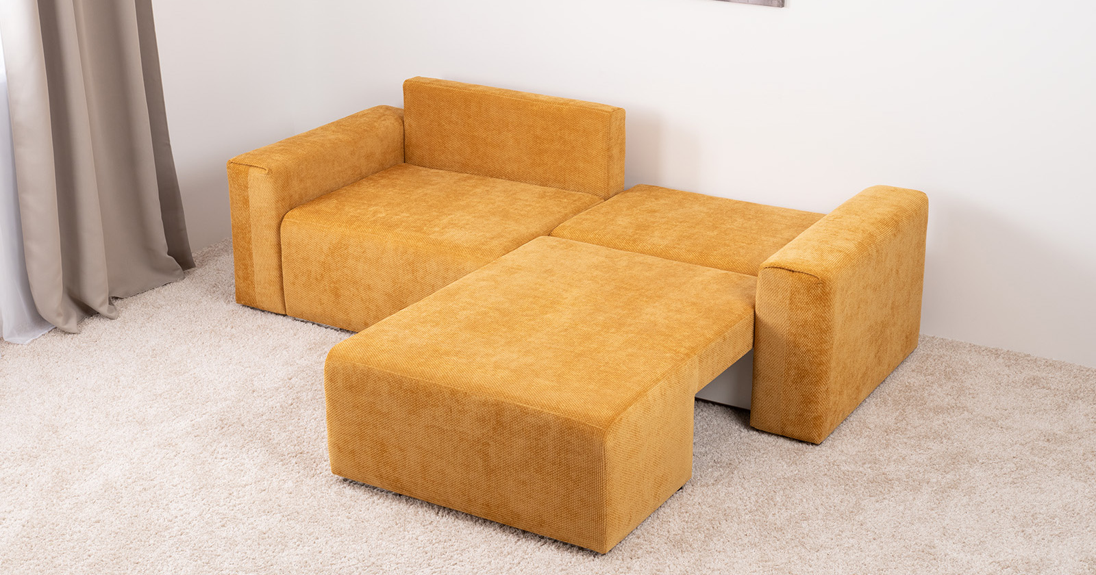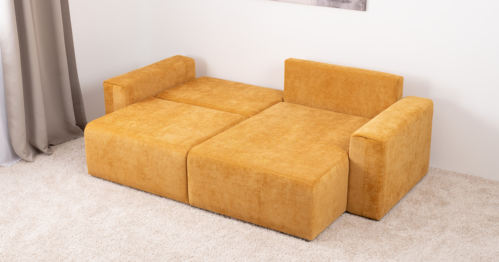 Диван-кровать угловой Оксфорд 714 композиция 1, шенилл STORM 8 горчичный, модульная система, сборка на любую сторону