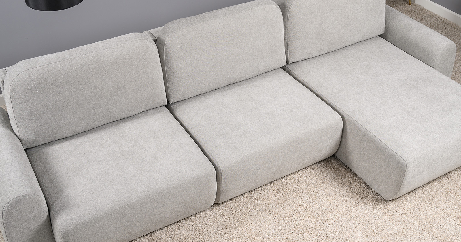 Диван-кровать угловой Тэдди 1505 композиция 2, букле Pique 010 светло-серый, модульная система, сборка на любую сторону