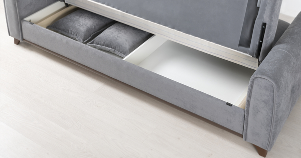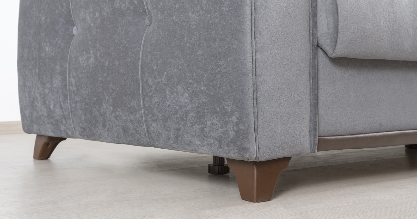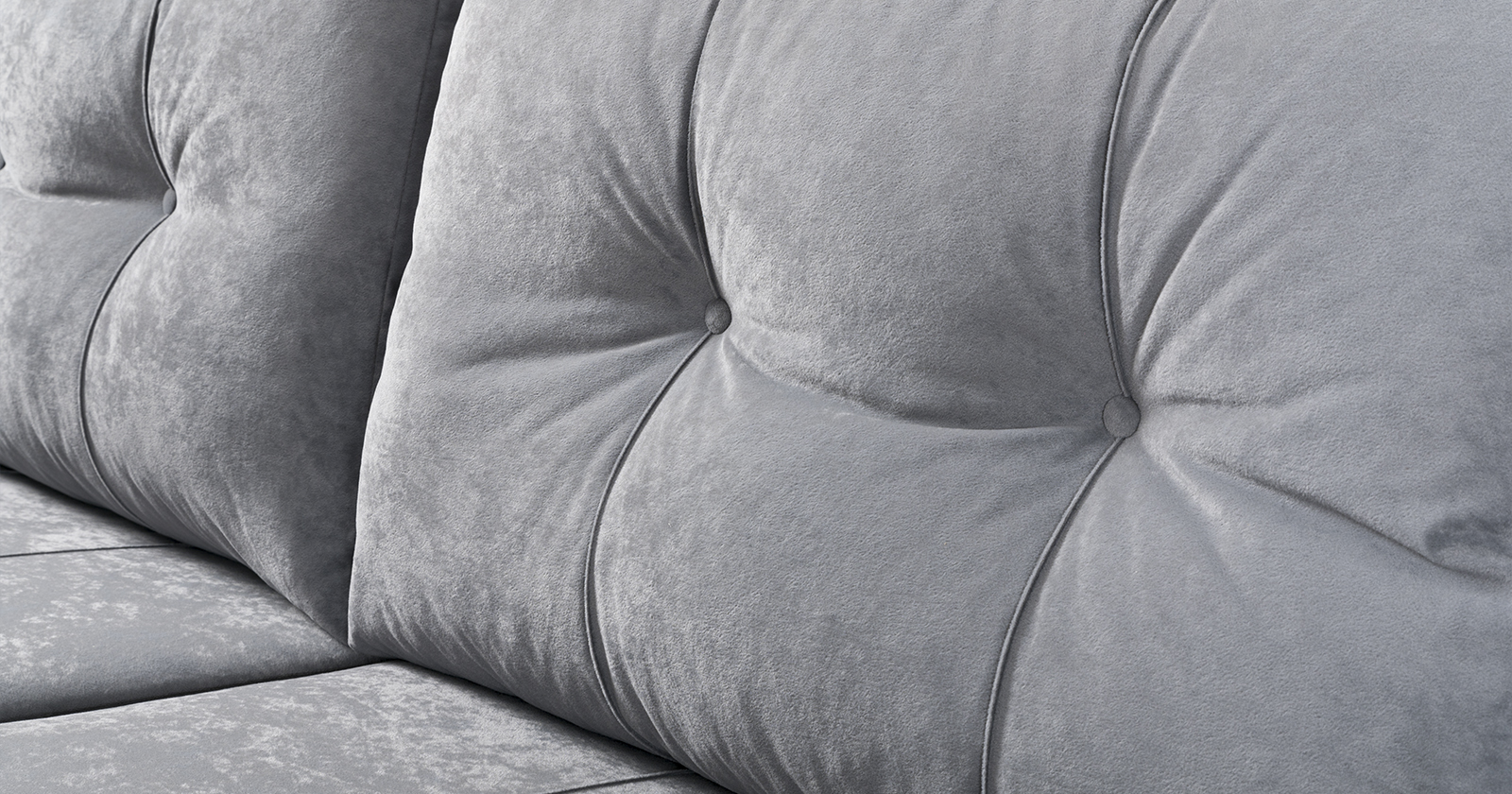 Выполнен в модном мягком велюре ROMANCE оригинальной фактуры. Ткань легко чистится, устойчива к зацепам, обладает повышенной износостойкостью. Благодаря особой технологии гладкого крашения Frozen Flower на поверхности ткани присутствует легкий краш–эффект, подчеркивающий невероятно мягкую фактуру ткани.