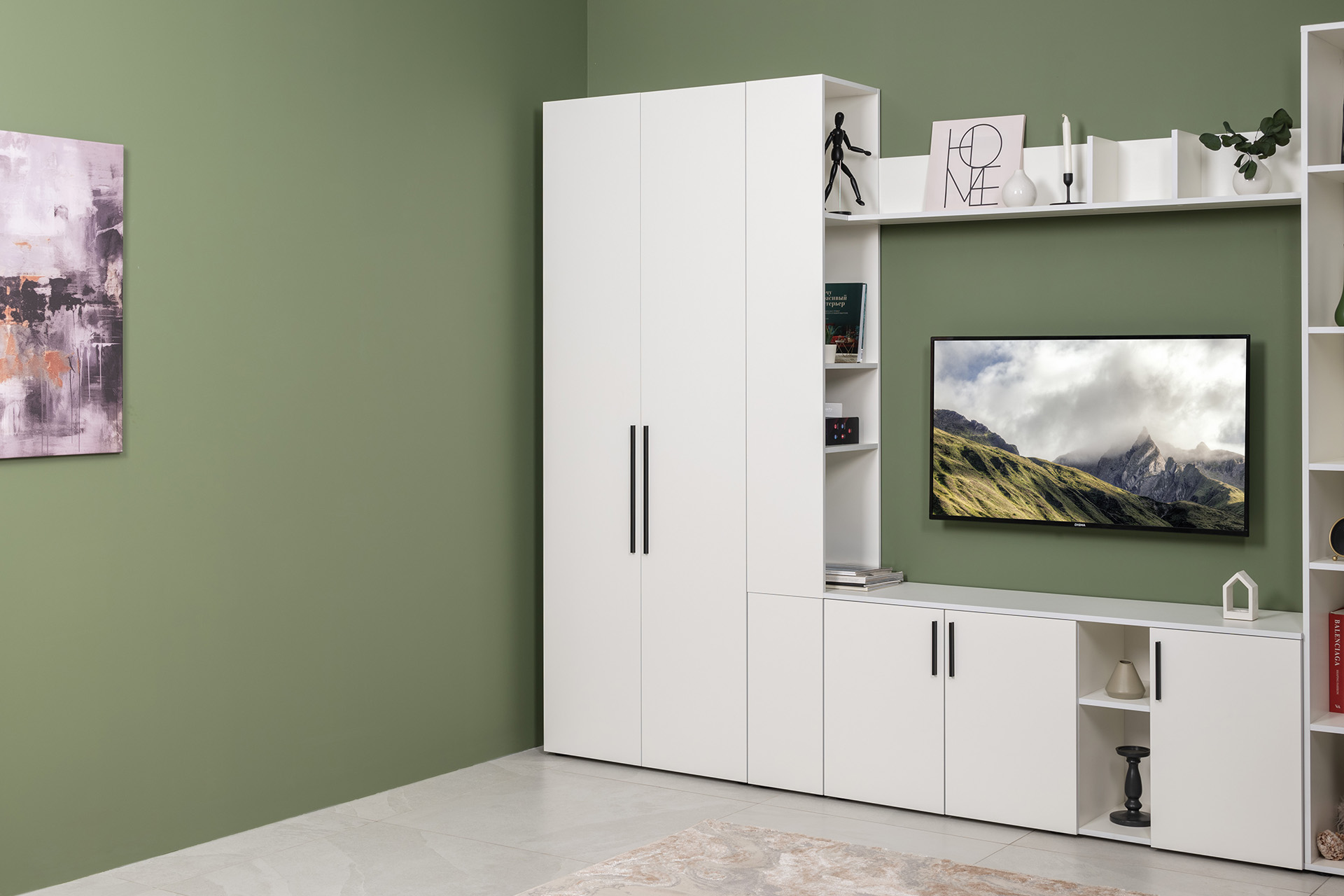 Гостиная Эйр композиция 1 белый PE шагрень, собирается на любую сторону