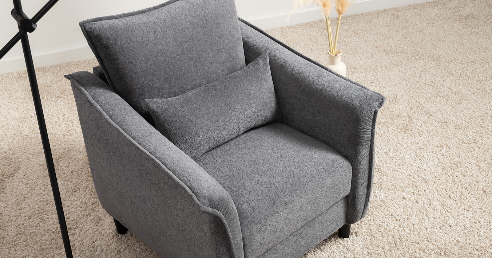 Изогнутые подлокотники в форме лепестков придают коллекции изысканный и элегантный вид, а дополнительные декоративные подушки обеспечат поддержку поясницы и помогут уютно устроиться на кресле.