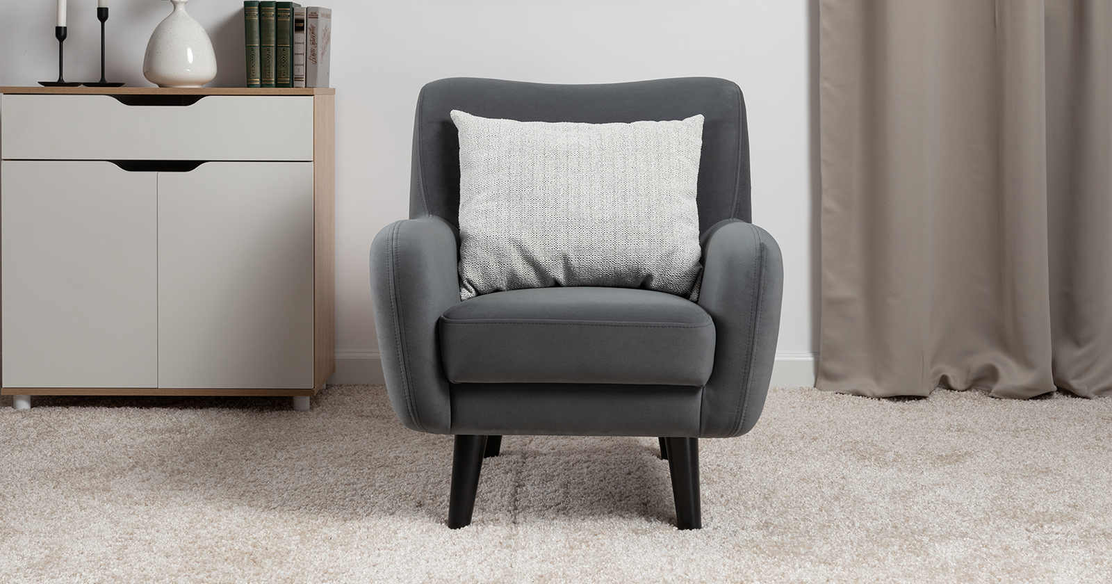 Стильное и уютное кресло Дакота с высокими опорами из массива станет акцентом интерьера вашей гостиной или спальни. Объемная приспинная подушка для комфортной посадки.