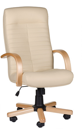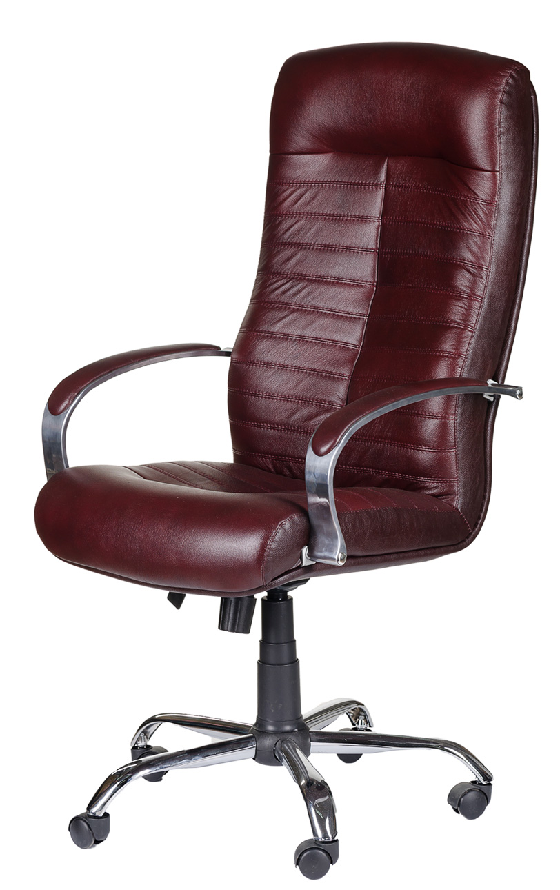 На фото светло-бежевая кожа с комплектацией крестовины и подлокотников в хроме.