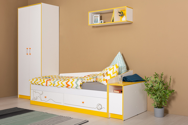 Кровать детская Альфа 11.21 солнечный свет, белый премиум