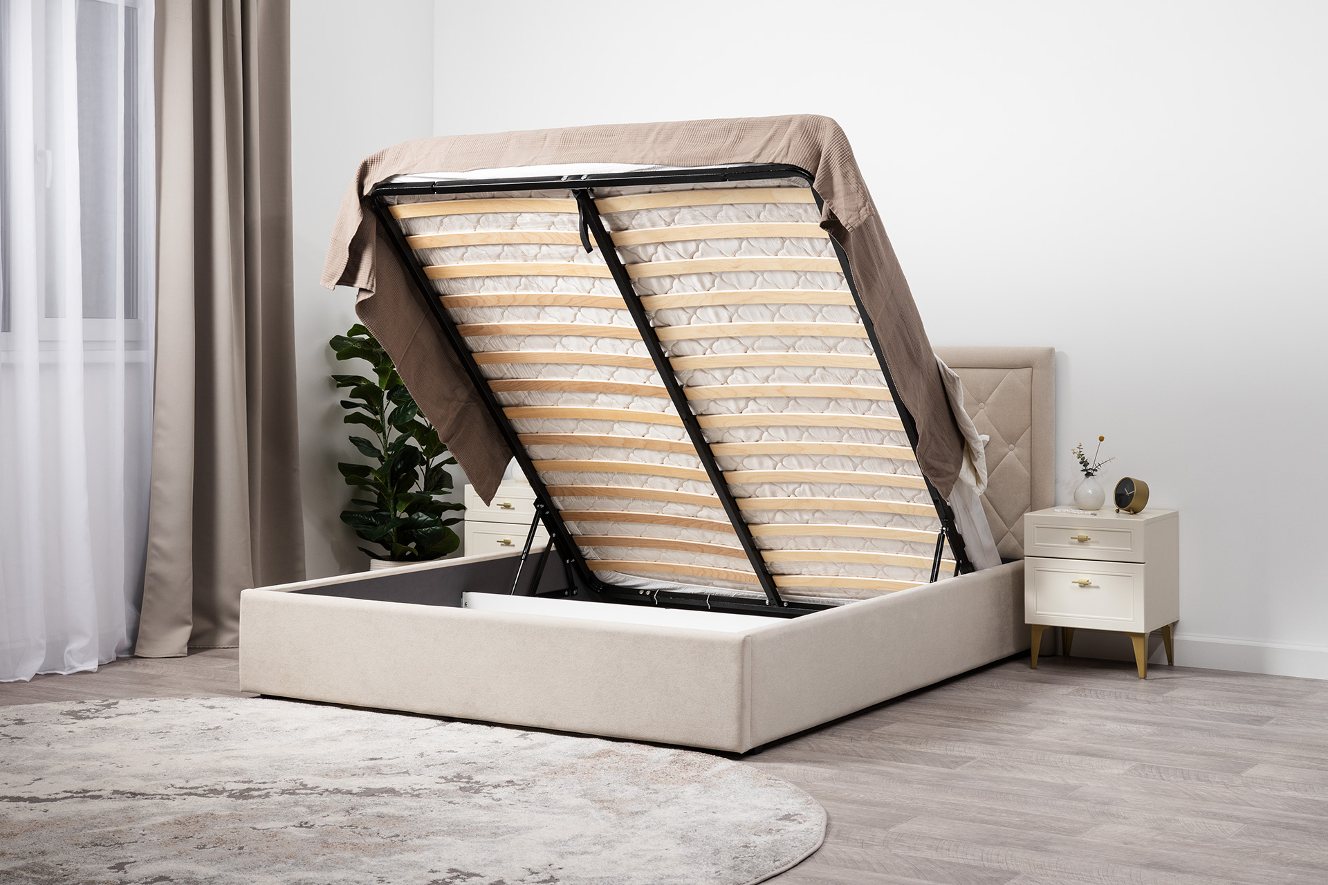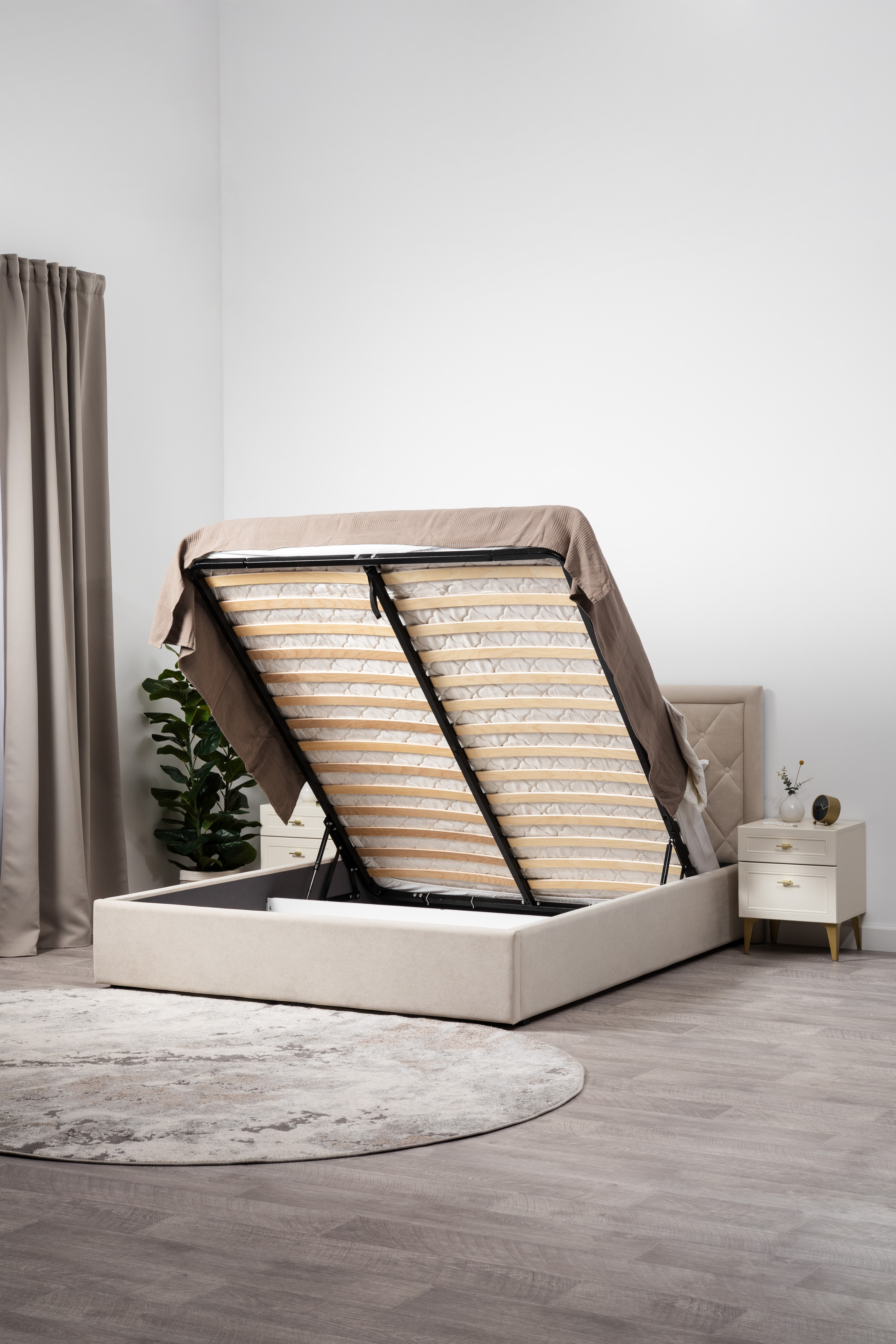 Кровать Марион 160 велюр OCEAN 002 бежевый с ортопедическим основанием и подъемным механизмом (спальное место 160 х 200)