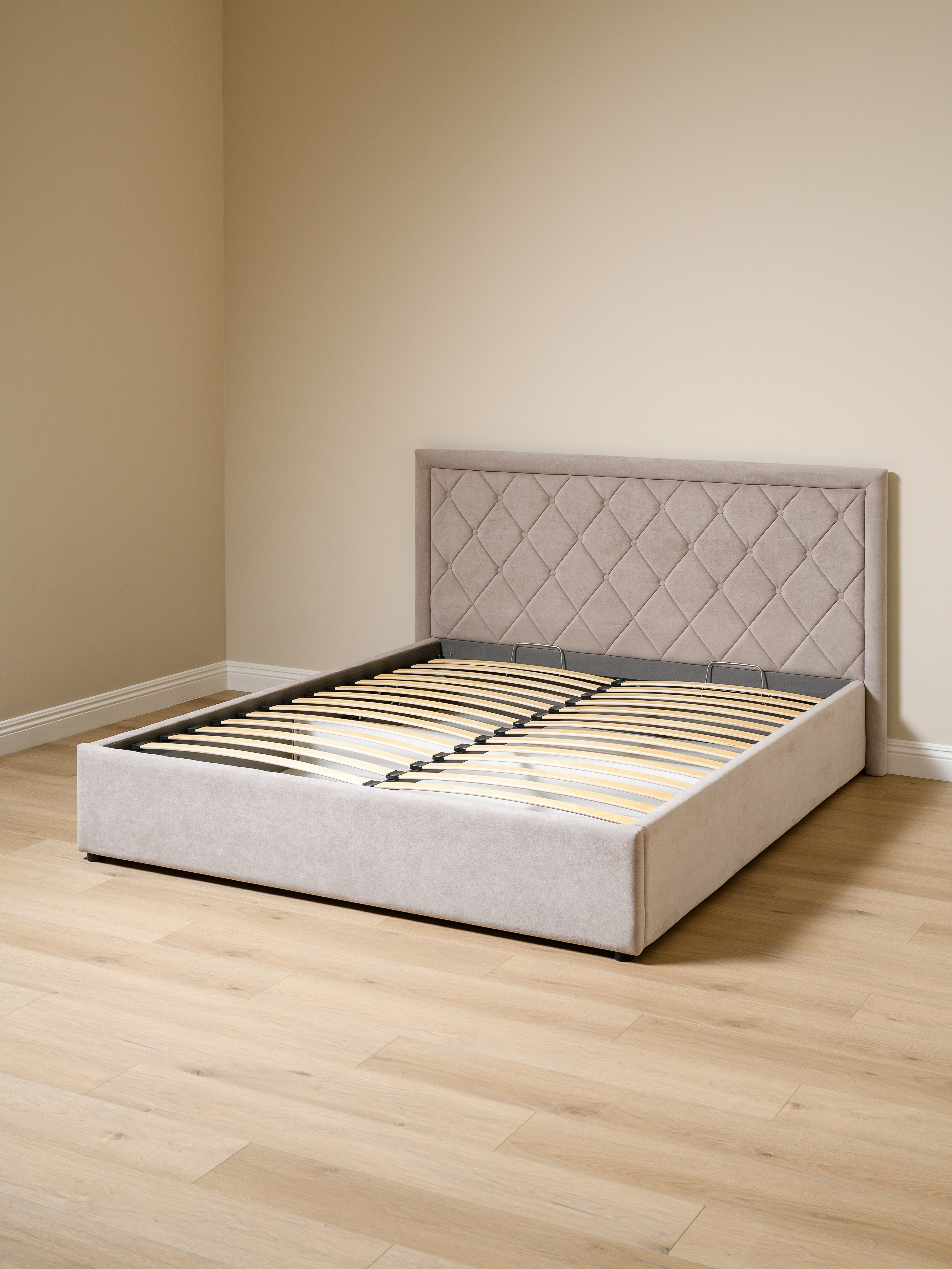 Кровать Марион 160 велюр OCEAN 005 темно-бежевый с ортопедическим основанием и подъемным механизмом (спальное место 160 х 200)