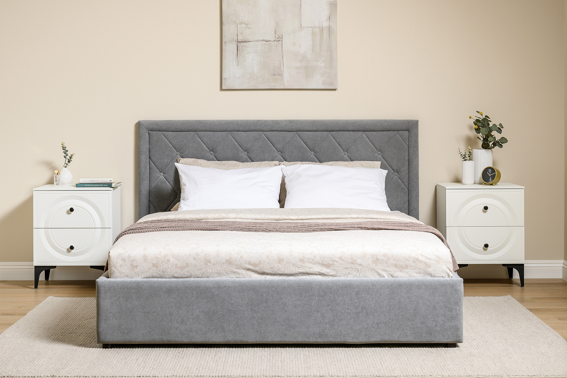 Кровать Марион — это идеальное сочетание стиля и комфорта. Элегантное изголовье оформлено стежкой в виде классической каретной стяжки, украшенной декоративными пуговицами, что придаёт изделию выразительный и утончённый вид. По всему периметру кровати проходит аккуратный валик, подчеркивающий геометрию и завершённость формы.