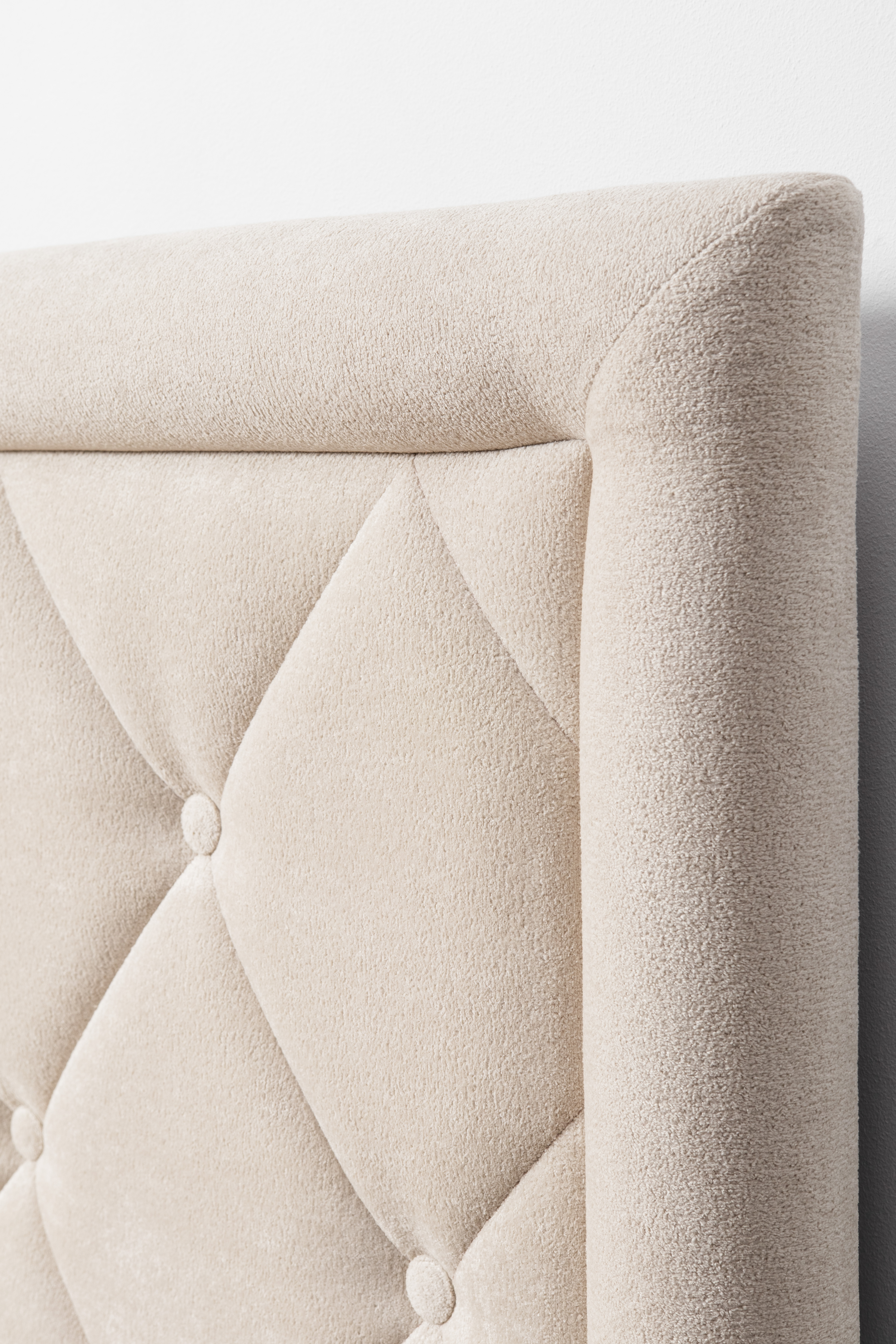 Кровать Марион — это идеальное сочетание стиля и комфорта. Элегантное изголовье оформлено стежкой в виде классической каретной стяжки, украшенной декоративными пуговицами, что придаёт изделию выразительный и утончённый вид. По всему периметру кровати проходит аккуратный валик, подчеркивающий геометрию и завершённость формы.