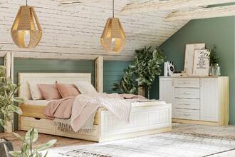Комплект № 4 подойдет для небольшой спальни, где нет возможности разместить большой шкаф для одежды, при этом для хранения предусмотрено большое количество ящиков: ящики в кровати помогут Вам аккуратно разместить все постельные принадлежности, а вместительная тумба будет прекрасным местом для хранения повседневной одежды. На тумбе можно удобно разместить сувениры, положить свою любимую книгу или использовать в качестве ниши для TV. Кровать с ортопедическим основанием обеспечит комфортный и здоровый сон.