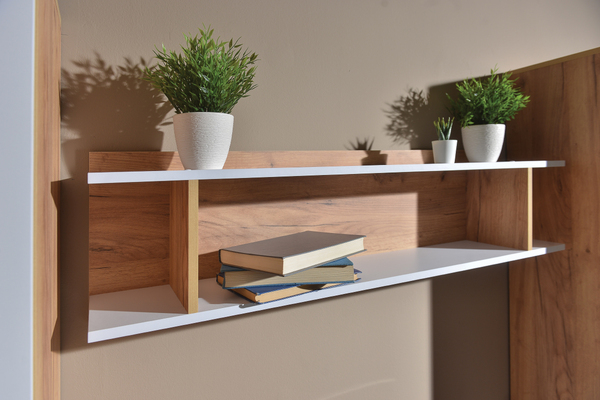 Полка навесная в гостиную Альба дуб золотой CRAFT, белый премиум