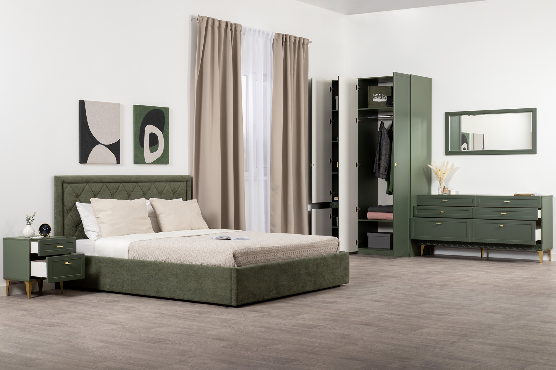 Шкаф двустворчатый Марион 16.340.02 дымчатый зеленый K521, олива шагрень AG 1050 ПВХ