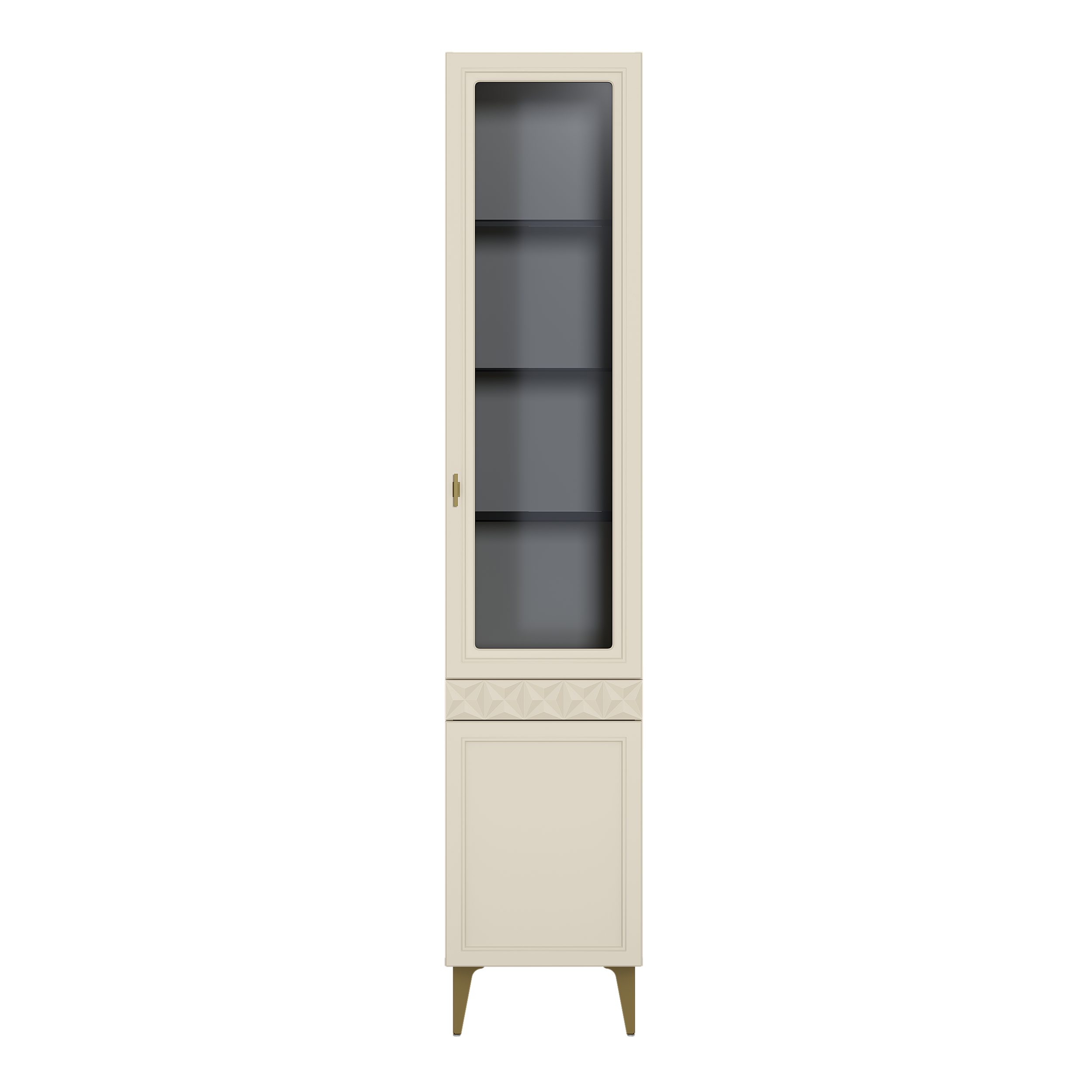 Шкаф-витрина Марион 16.397.01 слоновая кость С341 PE, слоновая кость 6898 ПВХ (собирается на любую сторону)