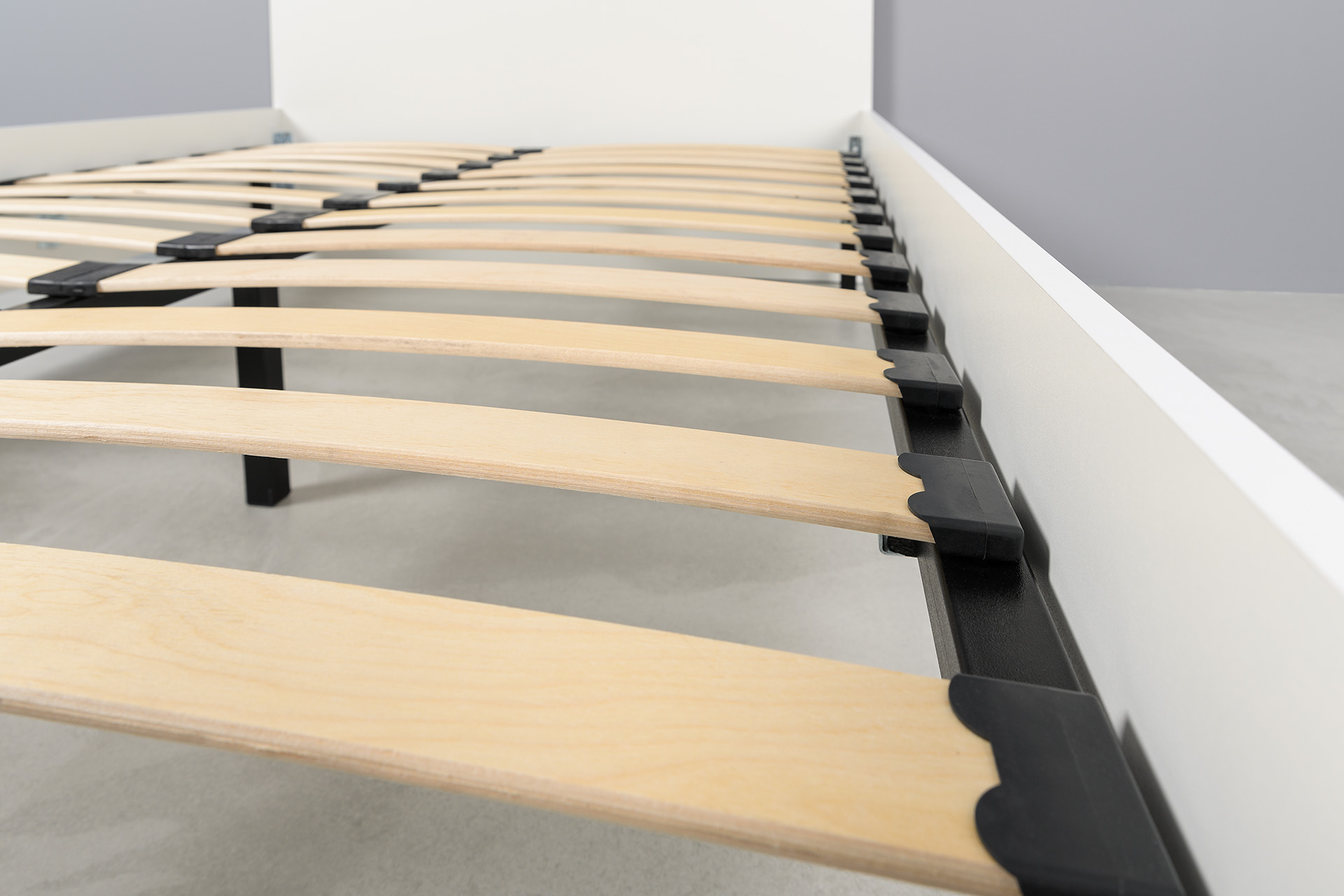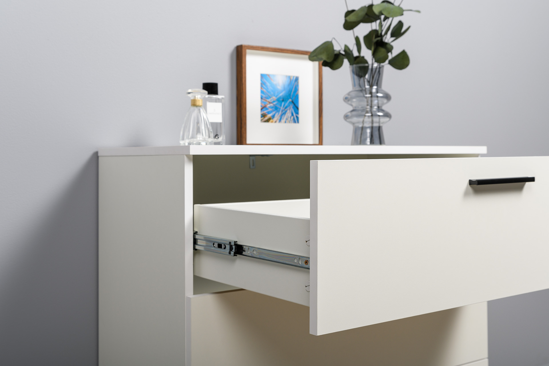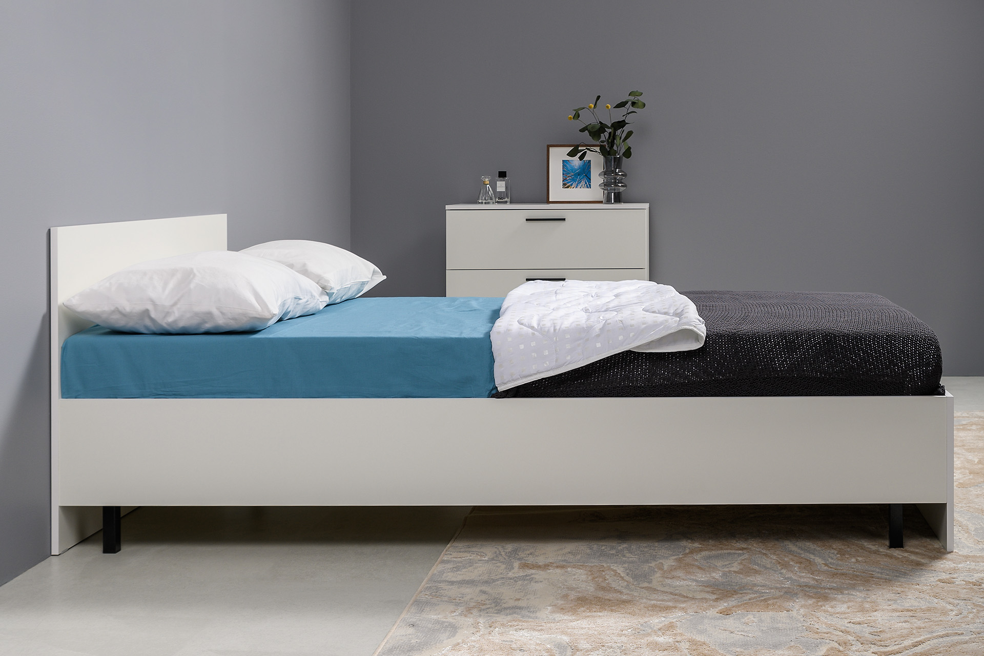 Два варианта кровати: ширина спального места 1200 и 1600 мм. Вместительный трёхстворчатый шкаф полноценной глубины с выдвижными ящиками и съемными полками. Ящики оснащены направляющими полного выдвижения.