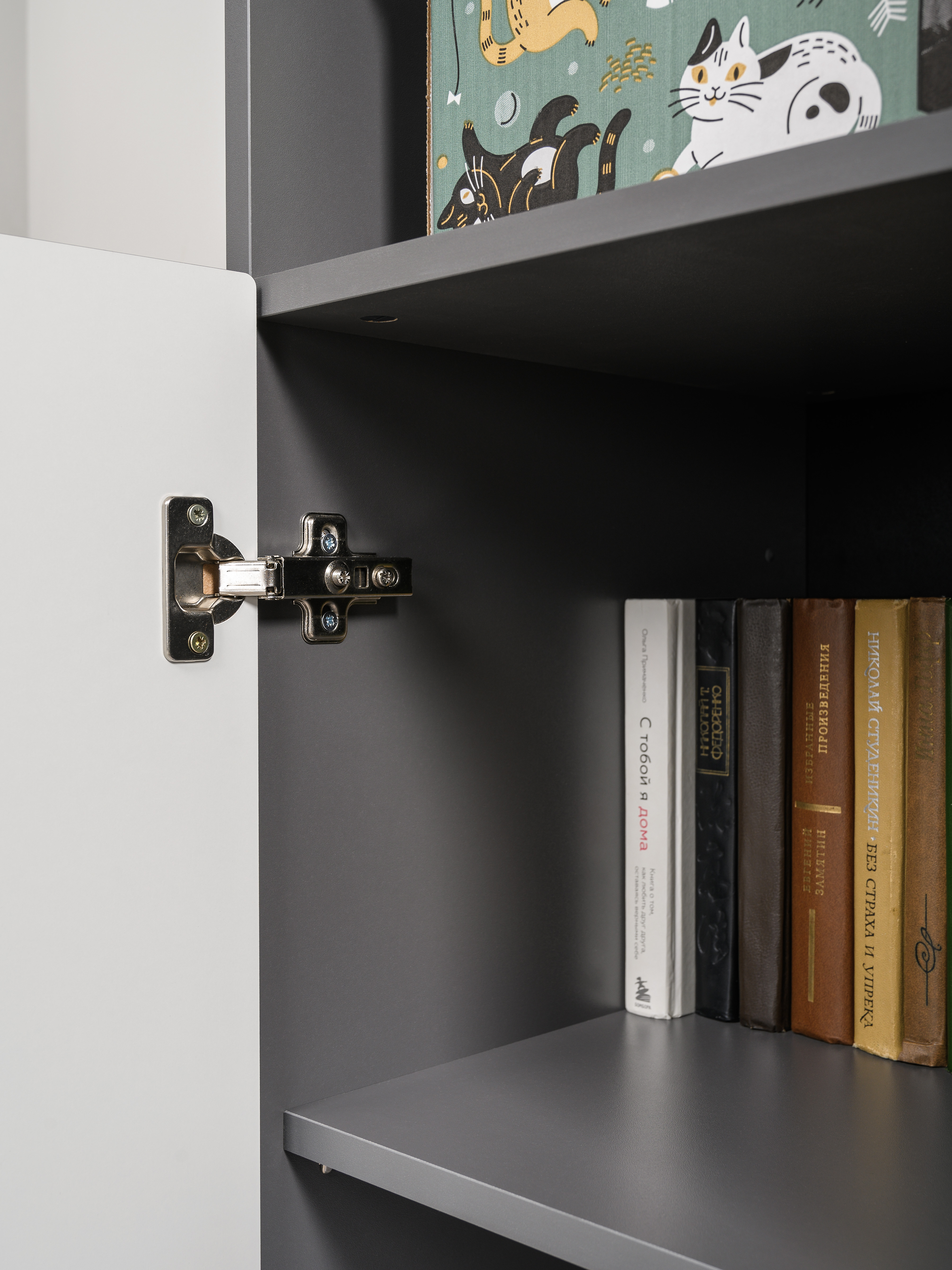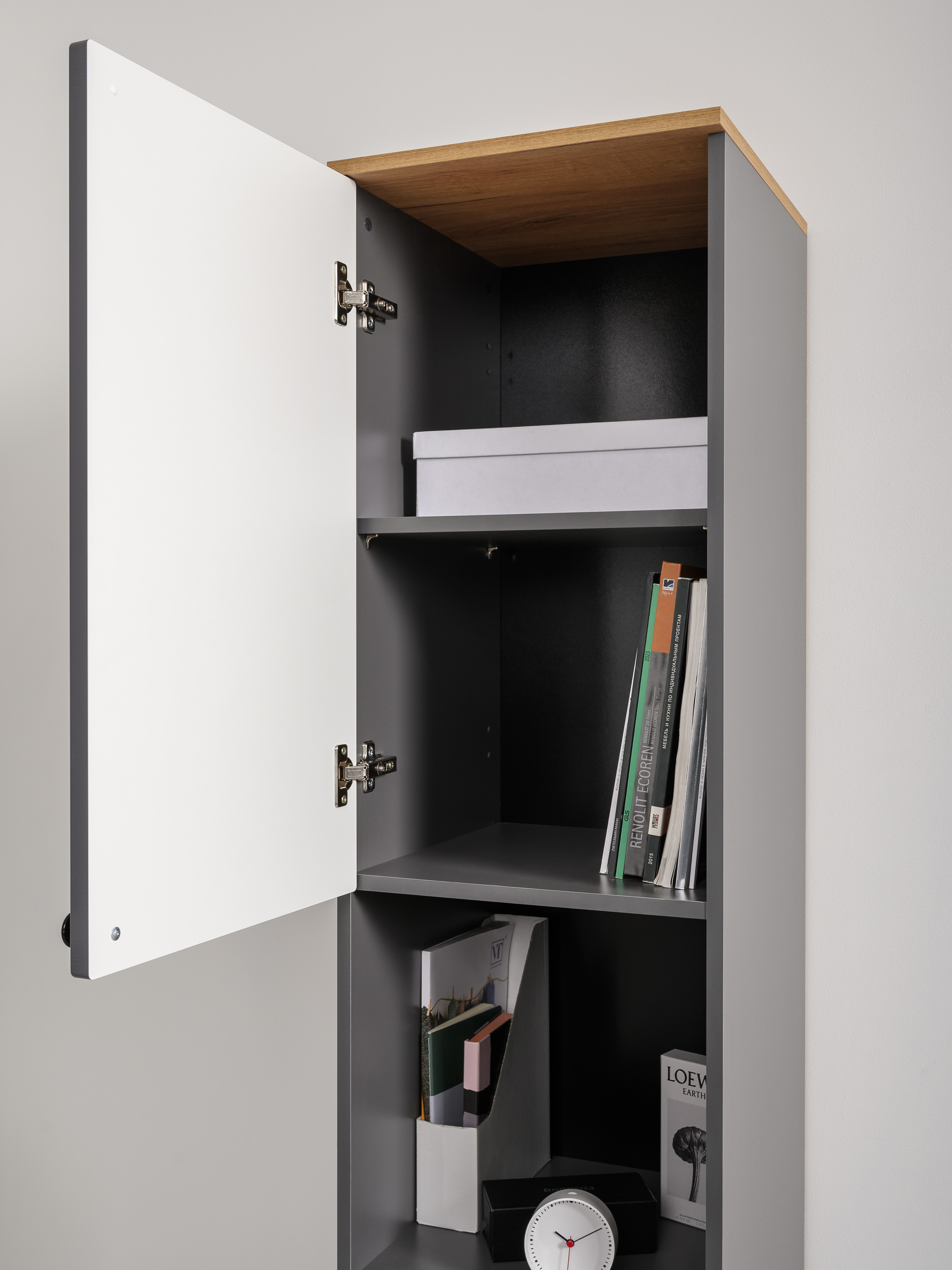 Стеллаж торцевой Лайн 10.141 дуб серый CRAFT, белый глянец ПВХ