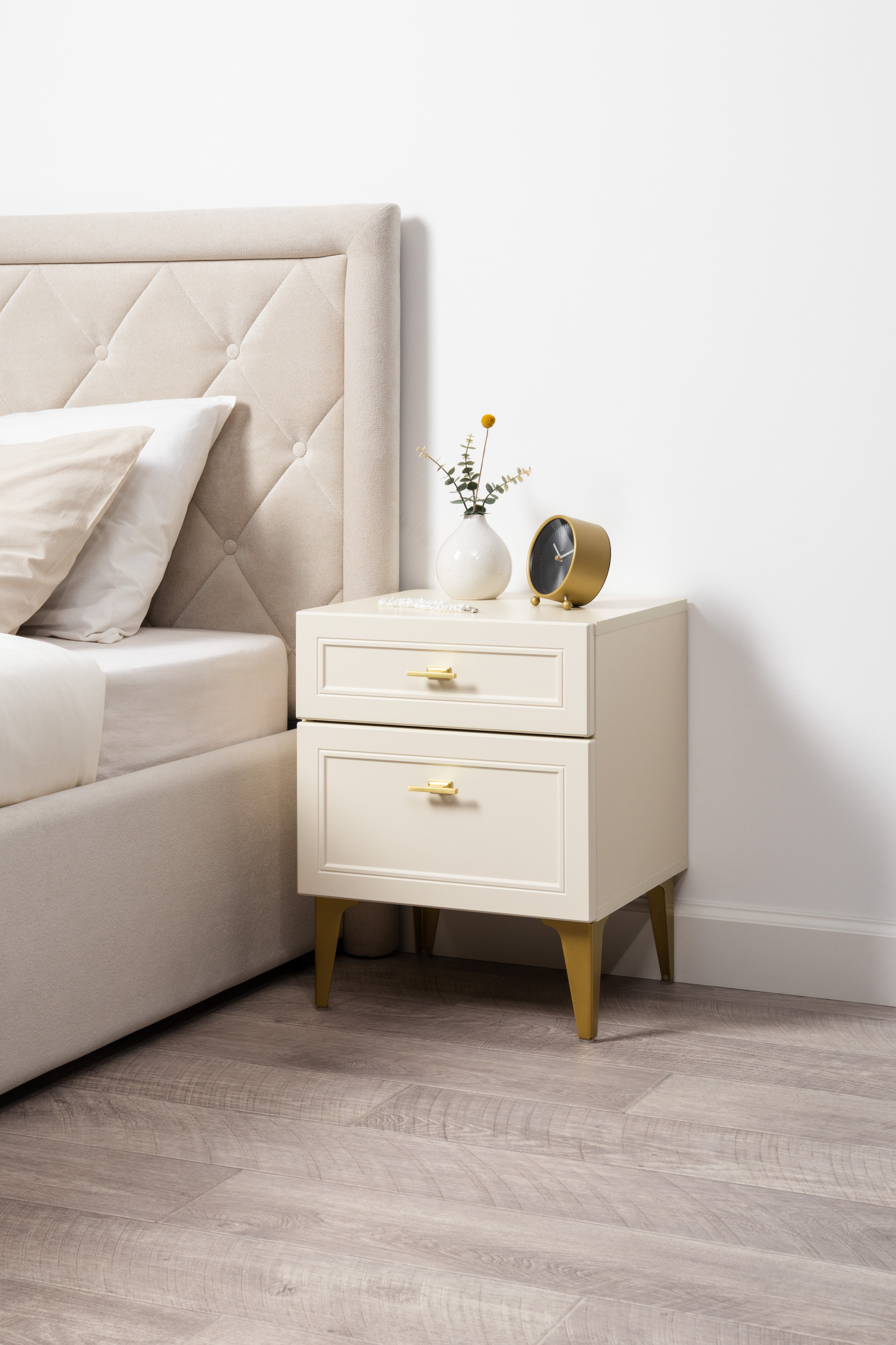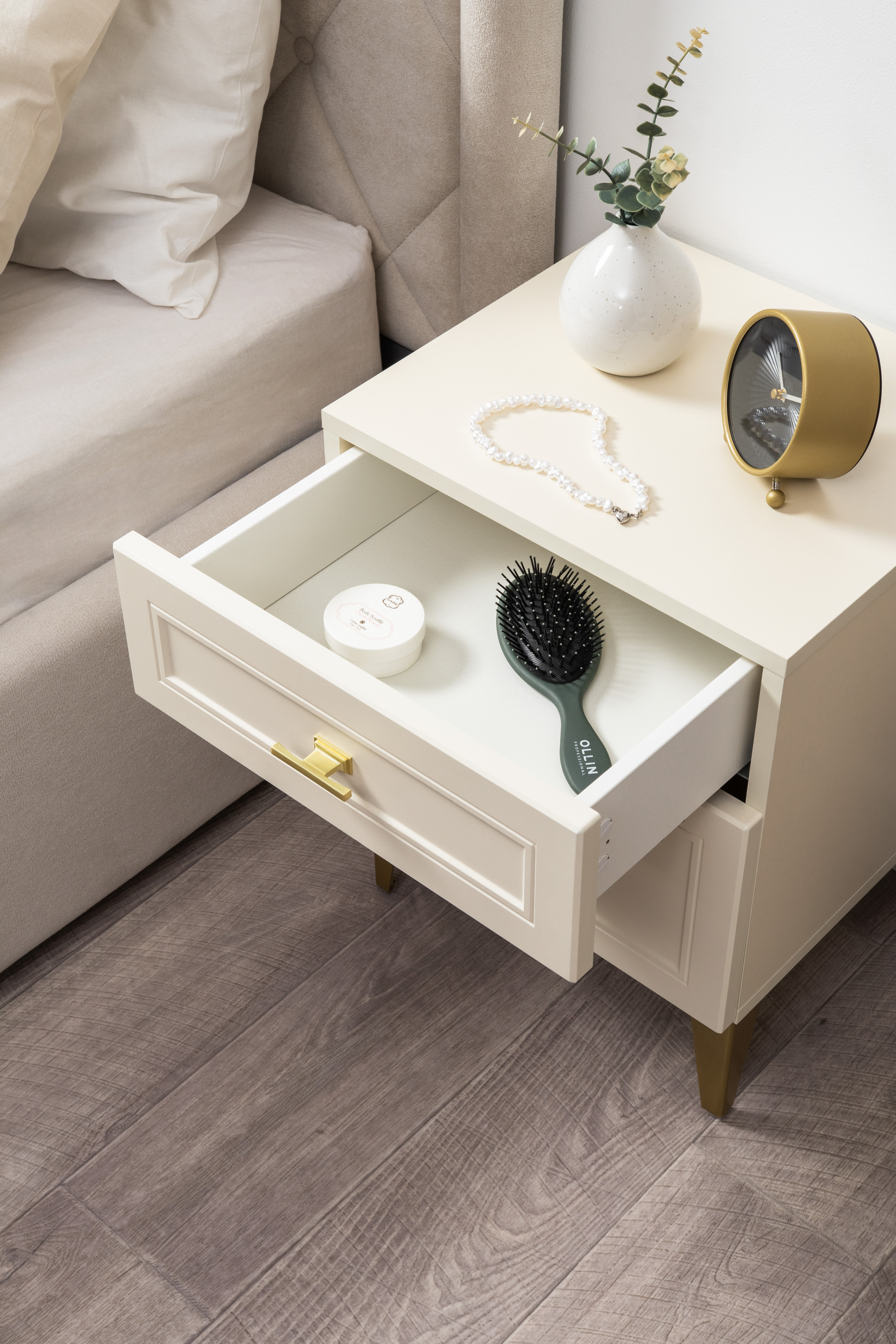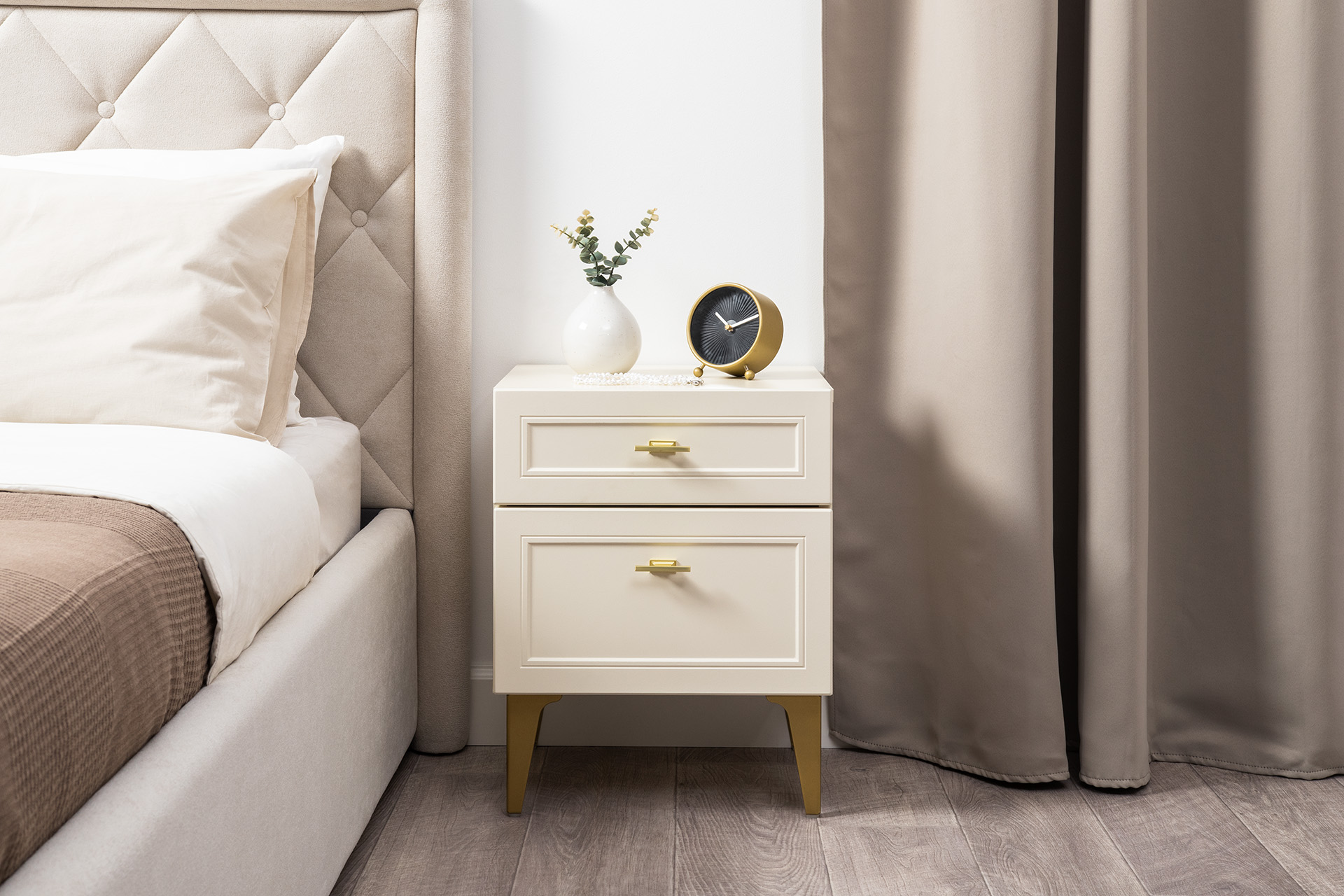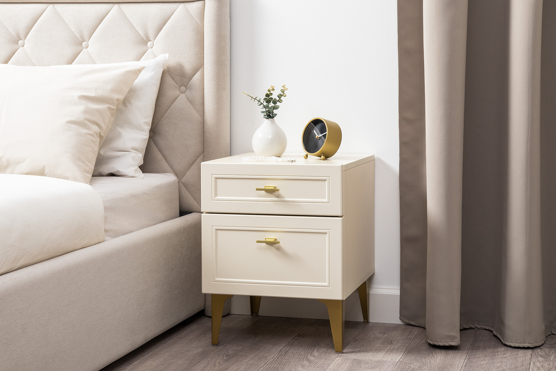 Тумба прикроватная Марион 16.14 слоновая кость С341 PE, слоновая кость 6898 ПВХ, белый PE шагрень
