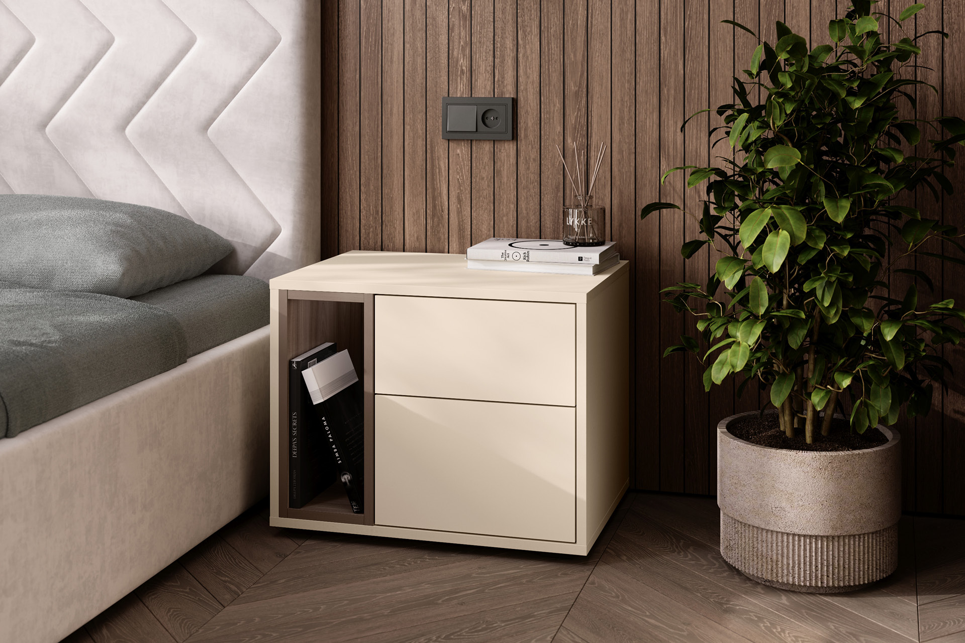 Тумба прикроватная Лакки бук песочный, дуб тортуга ПВХ, белый глянец ПВХ