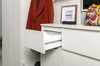 Все фасады коллекции открываются за край. Помимо лаконичного внешнего вида, отсутствие лицевой фурнитуры обеспечивает удобство использования в тесном пространстве, можно не опасаться зацепиться за ручку.